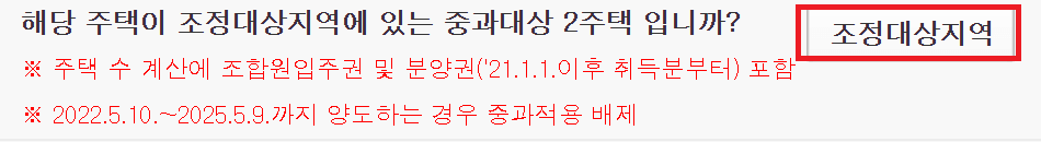 👇아래 국세청 홈택스 링크로 연결하여 하단에 조정대상지역을 클릭하셔서 검색해 보세요.